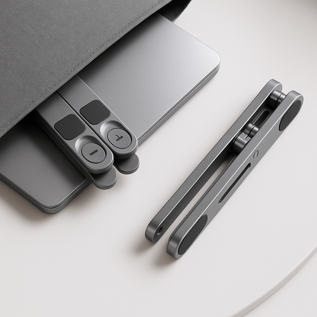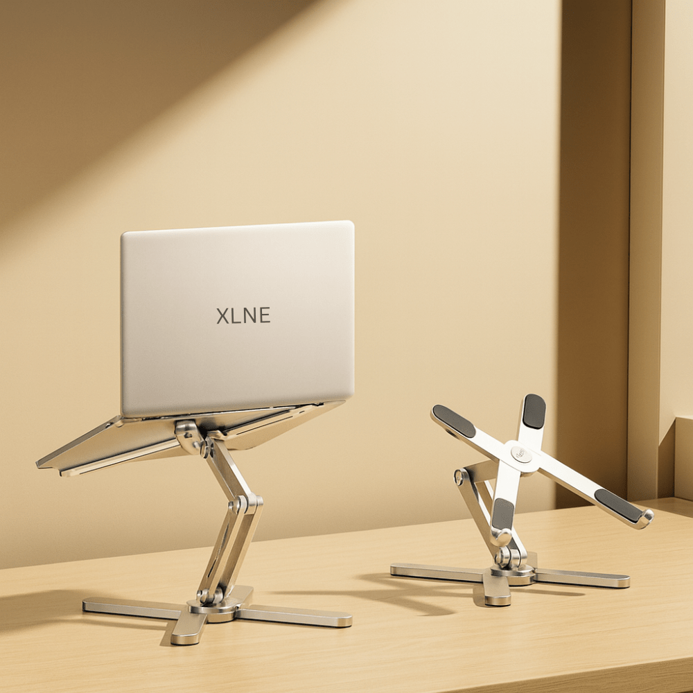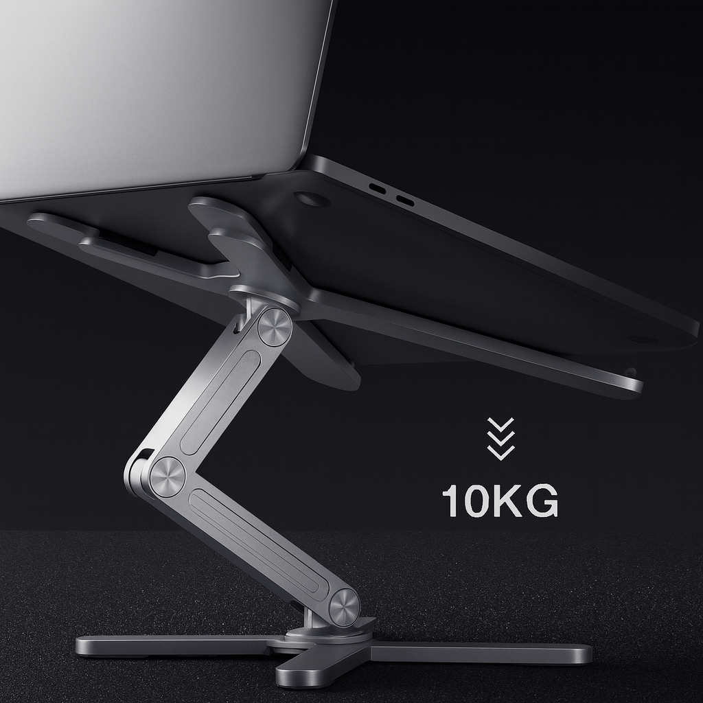 Model-X gives you both — military-grade durability that folds into a bag, 360° rotation, precise height/angle control, and a clean minimal design built for modern workspaces.